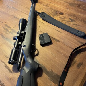 Winchester XPR, kaliber .308, med kikarsikte Sabre Abassador 2,5-10x50, med gängad pipa 52 cm för ljuddämpare. Aldrig använt.
