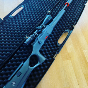 Bössan har genomgått ett kolvbyte till en Fine Ballistic Tools-kolv som är byggd helt i kolfiber. Kolven har en justerbar kolvkam, push & go-rembyglar och M-lock.
