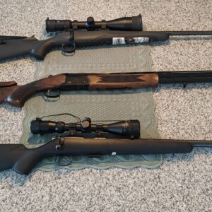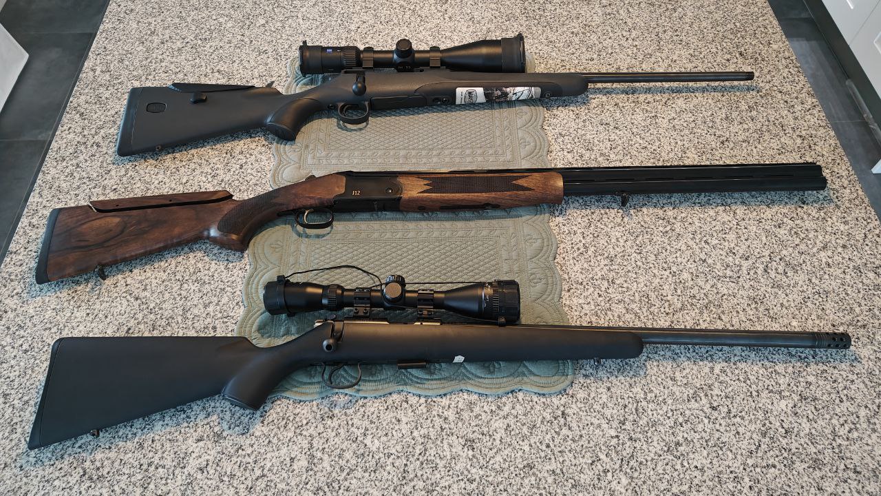 Mauser M18 .308, Scandium J12, CZ455 .22lr, Scandium 5 Vapenskåp. Allt är helt nytt, oanvänt, förutom Mauser M18 som enbart är inskjutet vid inköp. På kvittot ser du allt, förutom en Kalixteknik CR1 justerbar kolvkam Mauserbox som ingår. Jag har även en påse full med rengöring, fett och allt skötselmaterial man behöver plus ett par lådor med ammunition till varje vapen. Och ett Scandium 5 vapenskåp med nyckel.