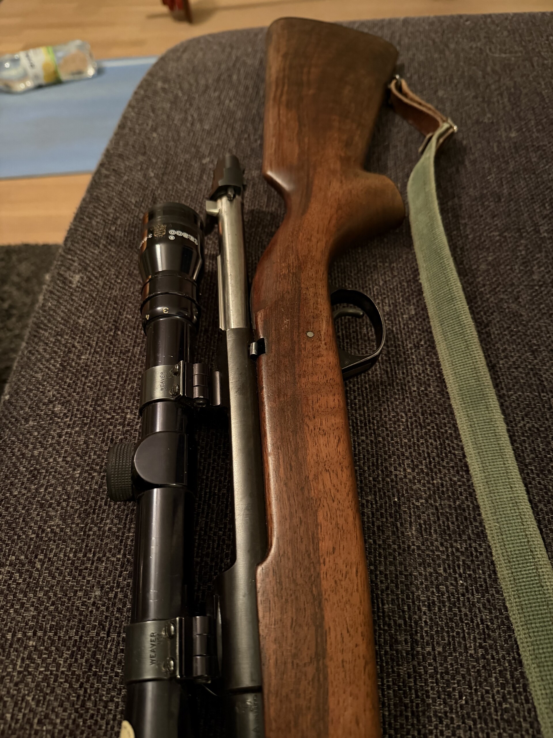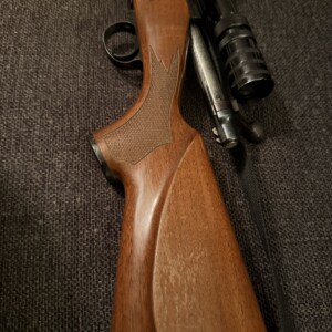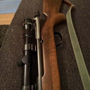 En Winchester modell 94 från slutet av 40-talet med kaliber .25-35 (6,3×52R). Bössan har en härlig patina och är försedd med ett Lyman-dioptersikte.