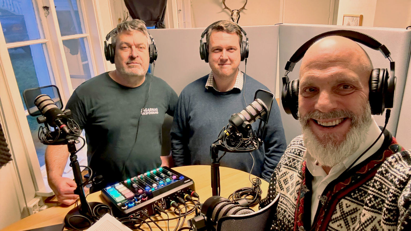 Foto: JRF Pelle, Jens och Anders i poddstudion.