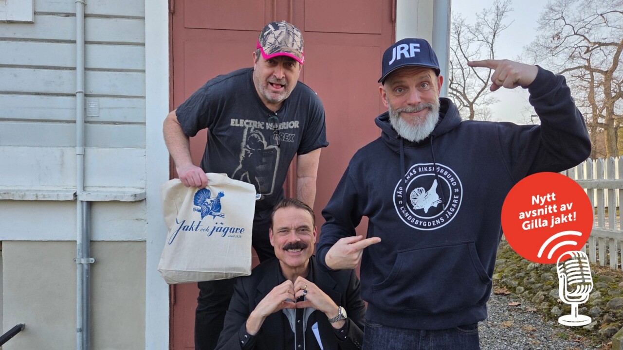 Foto: Jens Gustafsson Pelle, Anders och Mattias visar upp lite merchandise från JRF och pratar om marknadsföring och kommunikation i detta avsnitt av Gilla jakt.