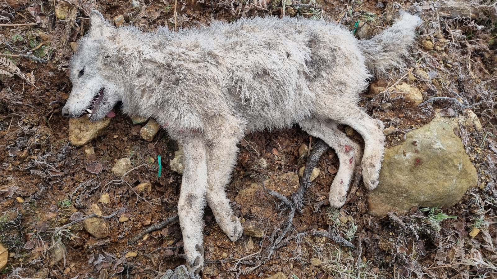 Vargen var en ung tik som till synes släpats ett antal meter av ett påkörande fordon.