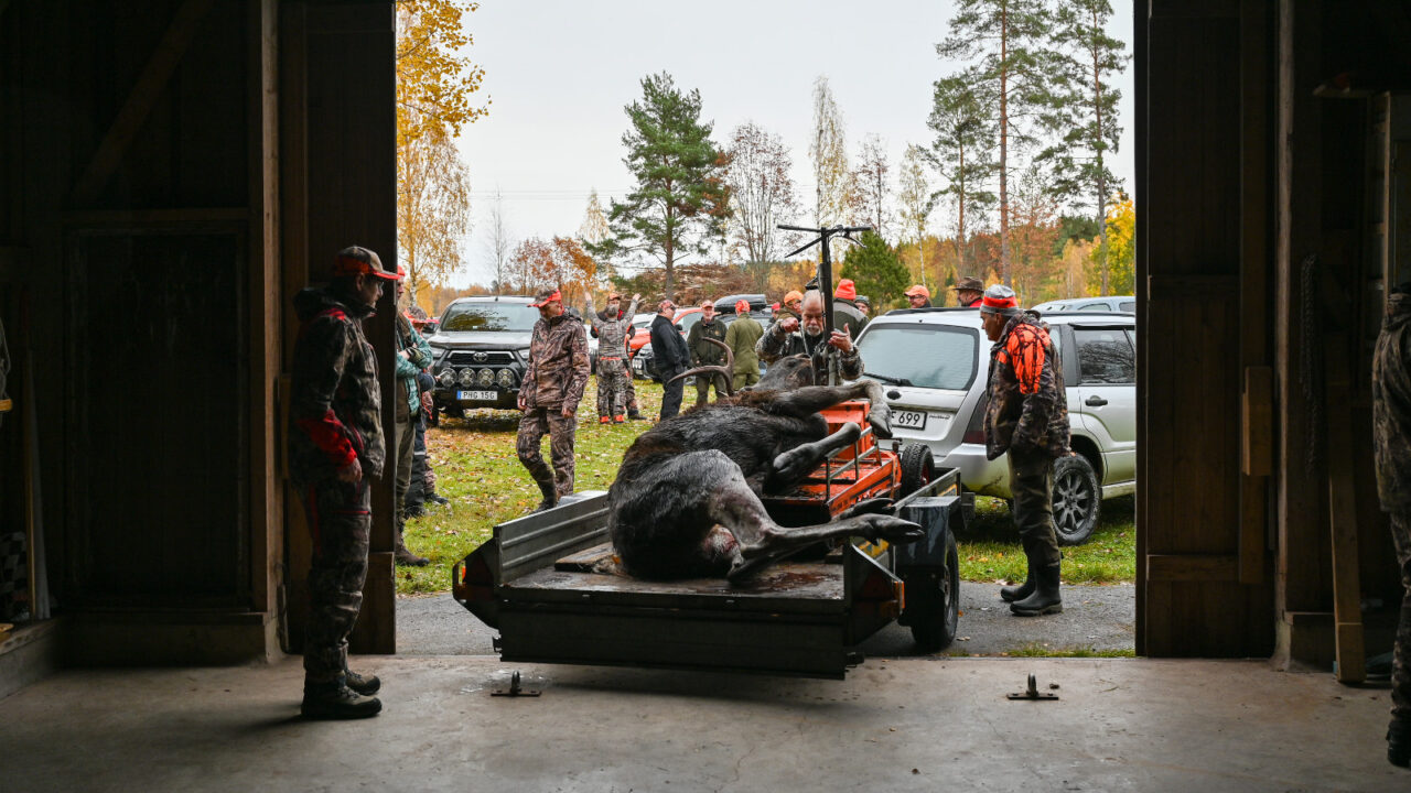 Ett spår av uppsparkad mossa visar älgens sista steg. Tjuren ligger vackert, som om den har lagt sig att vila i blåbärsriset. En stadig fyrataggare, precis den typ av ungtjur laget vill ta för att lämna de större vidare i förvaltningen.